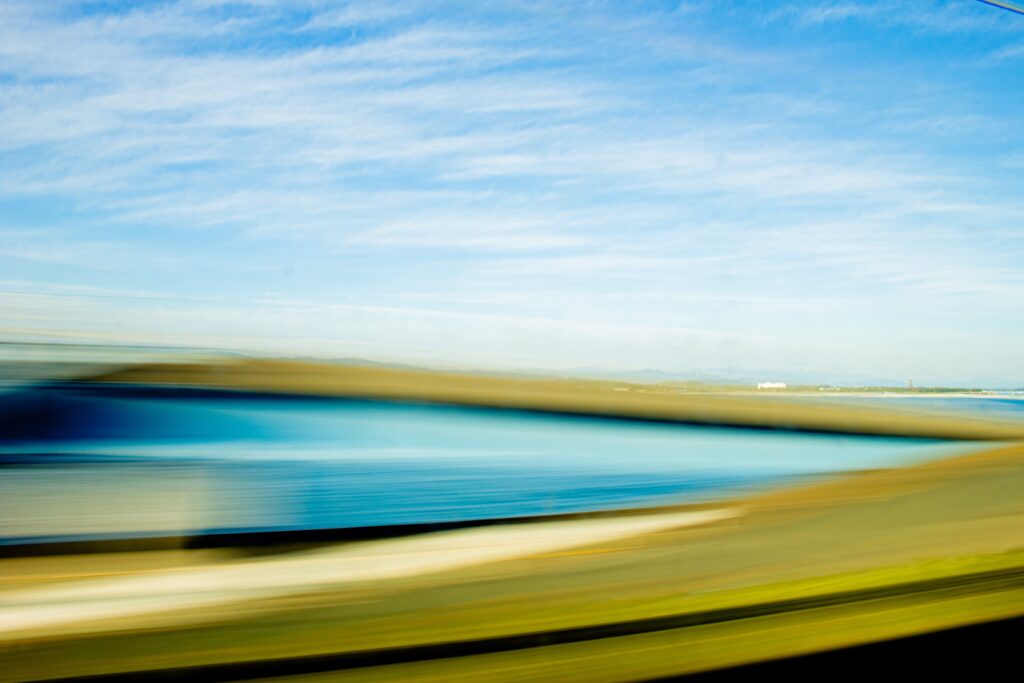 私はスローシャッターで撮影をするのが好きなので、とても新幹線と相性がいいのです。流れていく窓枠の景色が、普段移そうとしているファインダーの中そのものなのです。