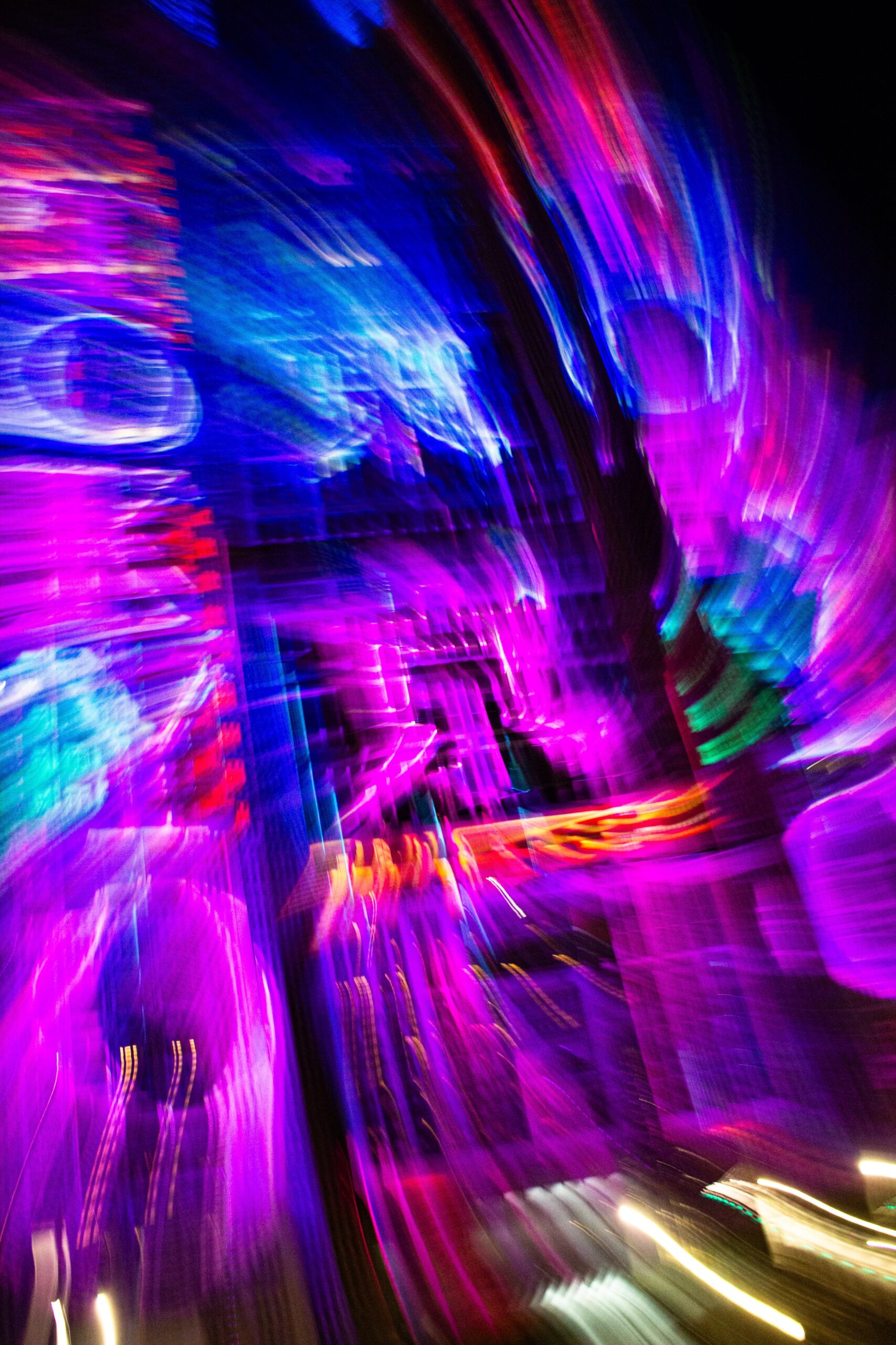 スローシャッターの特質上、長くシャッターを開く分光を集めるので写真が白飛びしやすいです。そのため、夜や暗い場所に合っている撮り方なのですが、展望台から降りてプロジェクションマッピングを見ていた際、ふと気がつきました。カメラを構えたほうがいいんじゃないかと。すると、とても私好みの写真が撮れました。