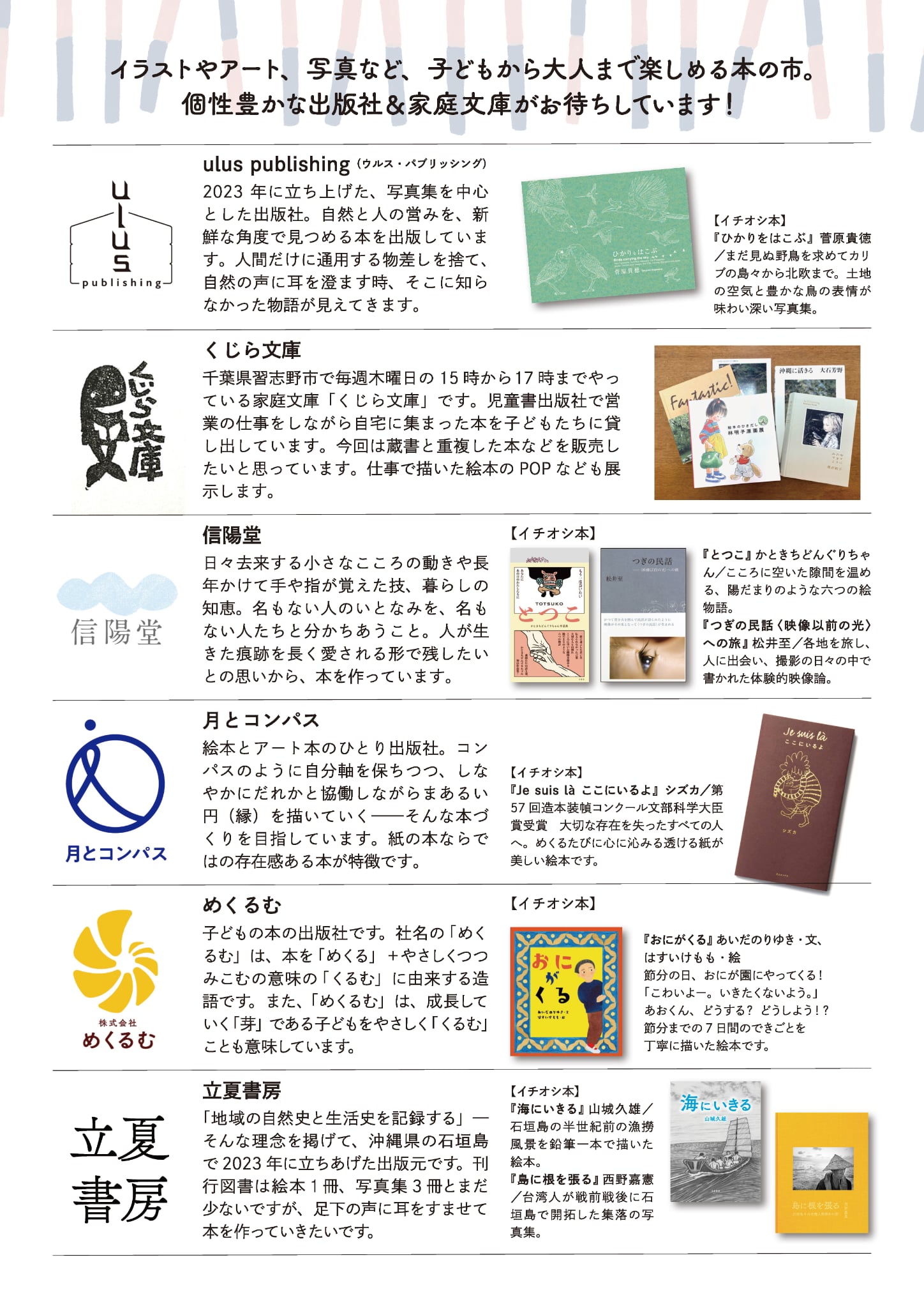 イラストやアート、写真など、子どもから大人まで楽しめる本の市。