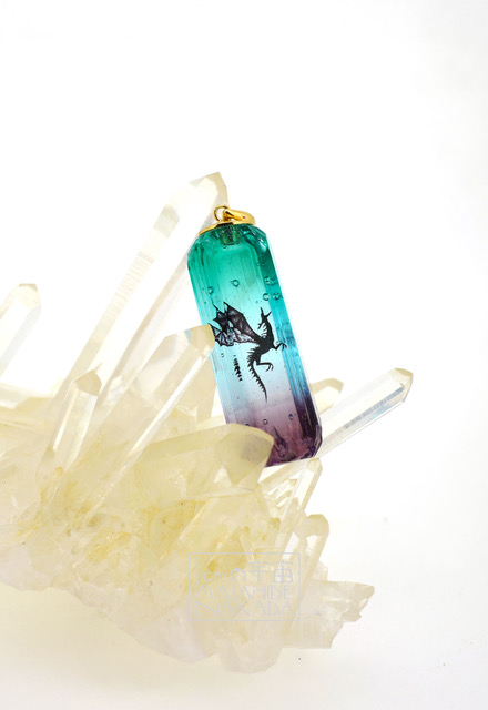 今展のテーマは「MEMORY –宿りし記憶–」。永く地球に存在するものや、人に大事にされてきたものに記憶が宿ったら…というストーリーで作品を作りました。矢尻や隕石、化石や宝石の形に造形し、その中に宿った記憶をガラスの立体物で表現しました。